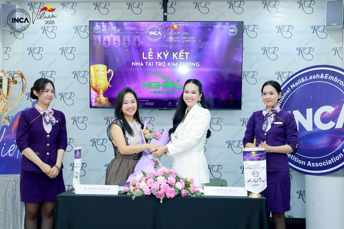 Ms. Nguyễn Tường Vi - Phó Tổng giám đốc Kềm Nghĩa tham gia ký kết Nhà tài trợ Kim Cương với Ms. Pang Mỹ Nguyên - Trưởng BTC INCA VietNam